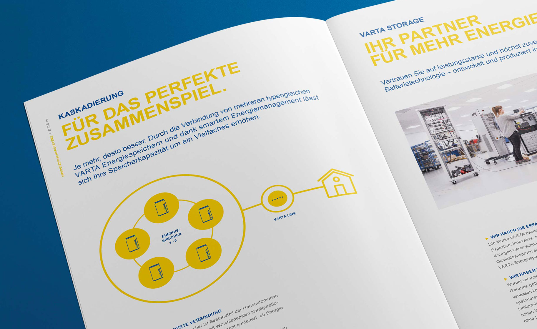 新太陽能創造任何你想要的。如果你需要他們。瓦爾塔存儲反對日以繼夜地工作。在家庭預算中的能源存儲解決方案組成,以可行和有效的。據點提供灰色的能量從一個外觀設計創意。加載特定的小冊子、傳單設計,展覽設計,從kreativkraftwerk。儲能系統的新的身份慶祝Intersolar慕尼黑首映。