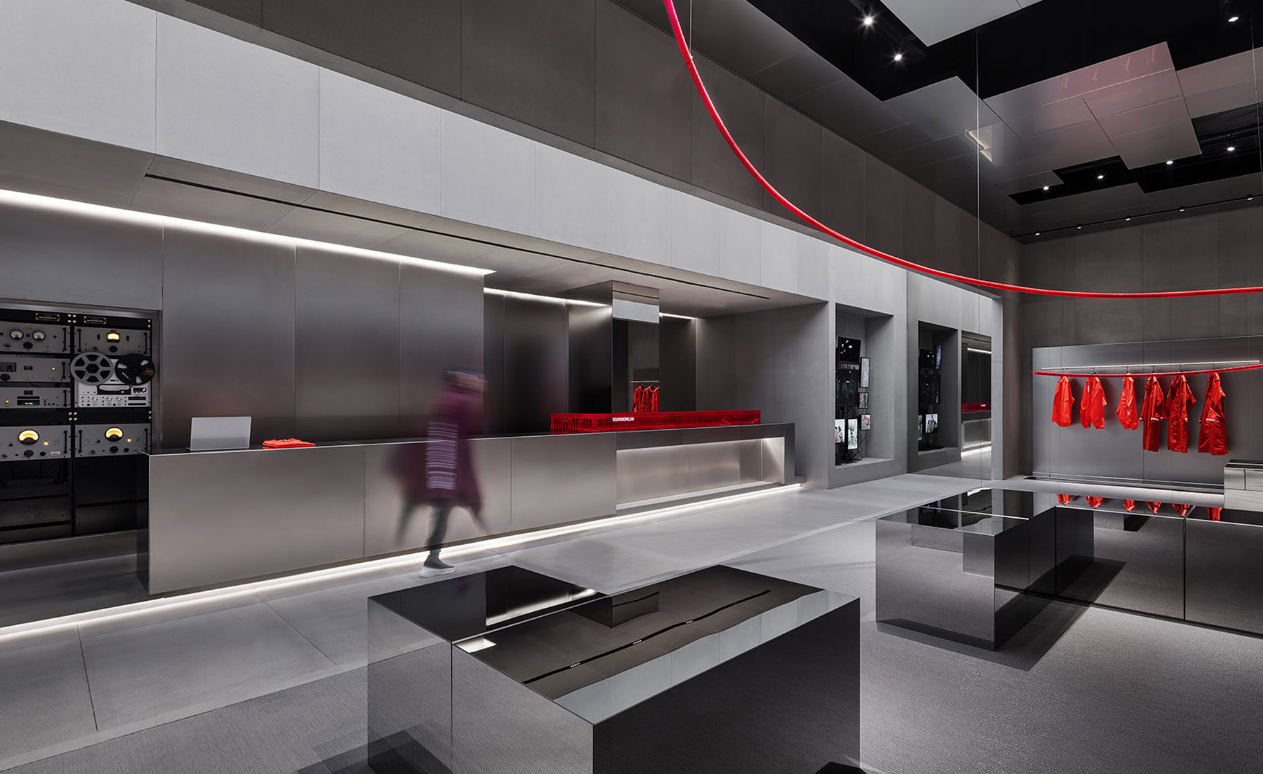 ROARINGWILD是一個以URBAN STREET風格為主的深圳本土服裝品牌。品牌通過「ROAR」的態(tài)度面對生活,熱愛生活,不被影響,形成自己的價值觀。品牌希望通過服裝為載體傳達本土街頭文化精神,創(chuàng)造屬于這一代的生活方式和態(tài)度。本項目為品牌的形象旗艦店的VIP線下店,對比此前開業(yè)零售店的引人注目,旗艦店在設計上更注重體現(xiàn)品牌內在價值觀。本項目位于深圳深業(yè)上城城市綜合體內,其中項目所在的L3層為歐陸小鎮(zhèn)風格的休閑商業(yè)街。