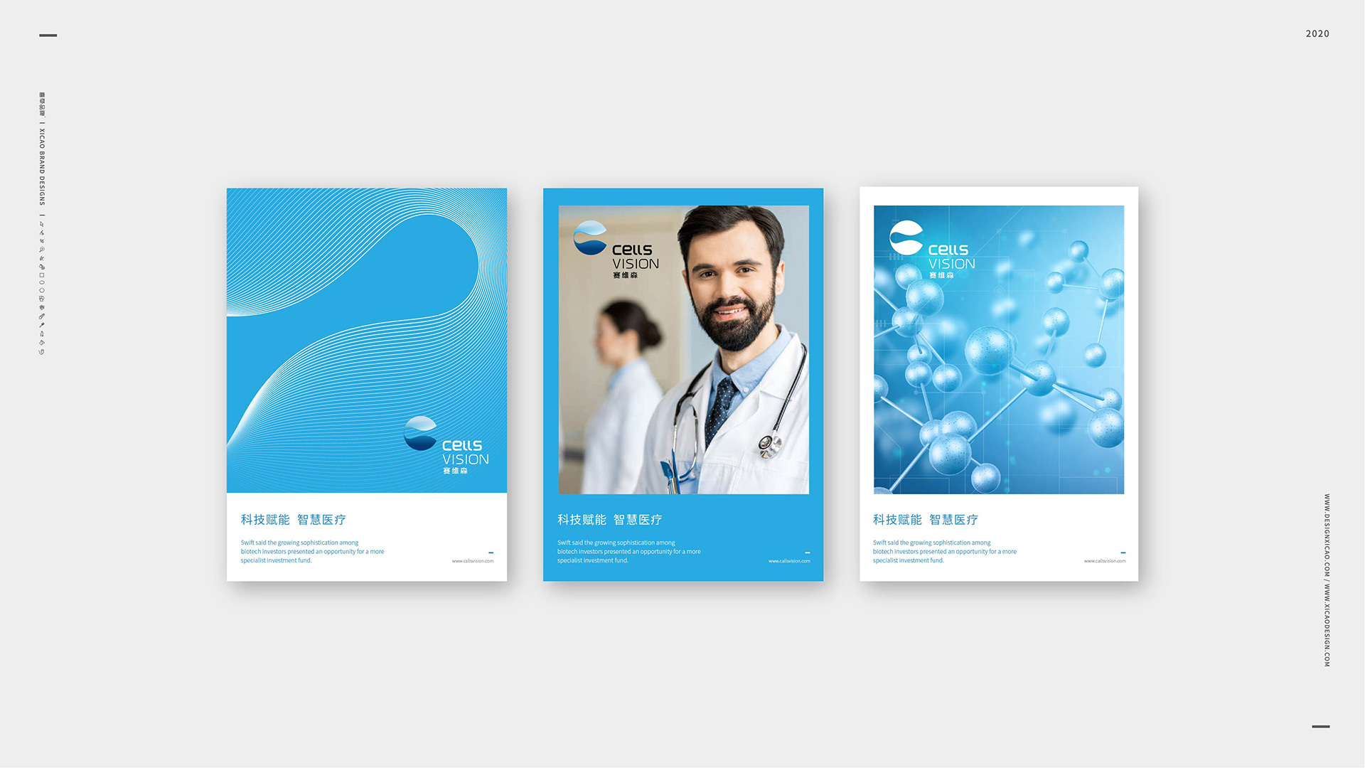 標志保留了原有的圓形外觀,更正了單詞的縮寫,不是“S”。而是“C”和“V”,結合醫學科技兩個領域,做到醫工結合。中英文字體做獨立設計,保持唯一性和企業特征。