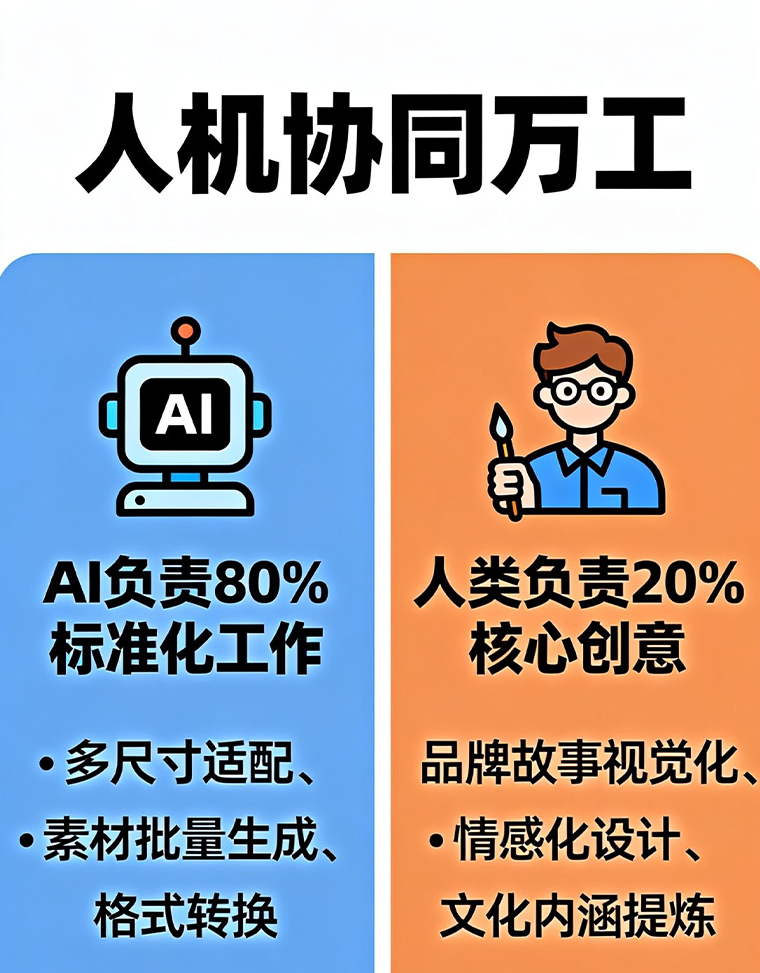 破局關鍵在于建立"人機協(xié)同"新范式:AI接管素材生成、格式適配等機械勞動,釋放設計師專注于戰(zhàn)略敘事與情感觸點設計。2025年AI現(xiàn)狀報告顯示,采用"設計師主導+ AI輔助"模式的團隊,創(chuàng)意效率提升150%的同時,品牌記憶點保留率反而提高23%。行業(yè)亟需構建三層保障體系:技術層開發(fā)可解釋的生成模型,規(guī)范層建立AI素材版權登記機制,教育層培養(yǎng)兼具算法思維與人文洞察的"AI原生設計師",最終實現(xiàn)技術效率與人性溫度的動態(tài)平衡。